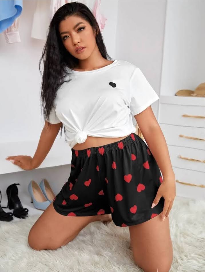 Conjunto de shorts y franela con estampado de letras y corazon