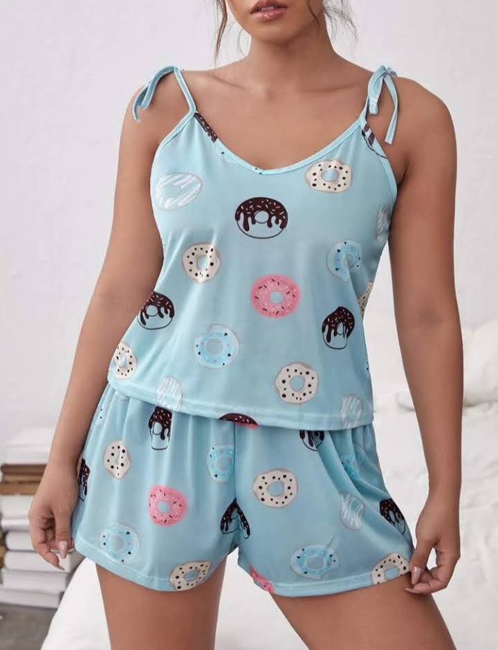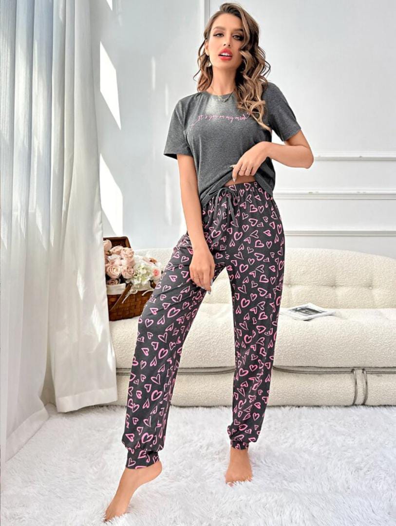 Conjunto de camisa y pantalon bicolor con estampado de ojitos